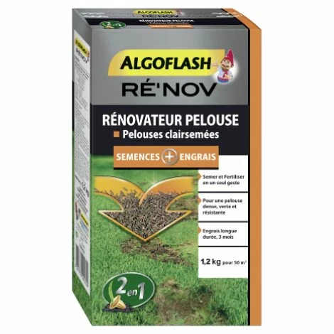 Le rénovateur de pelouse permet de semer et de fertiliser. Il est composé de semences et d’engrais pour réparer les gazons clairsemés et les rendre de meilleure qualité et plus robuste.