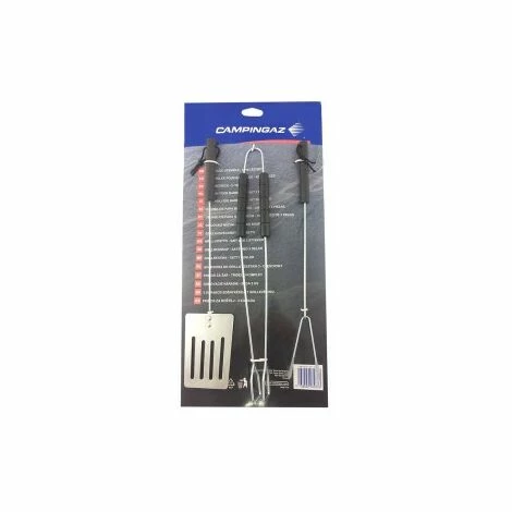 Accesorios Barbecue 3P. 203233. -Pack de accesorios pour barbecue composé de pagaie, pince à épiler et fourchette. -MARCA: CAMPINGAZ. -Dimensions de l’emballage: 23,01 x 48,49 x 3,00 cm. -Poids du paquet: 0,20 kg. -Matériel: acier inoxydable.