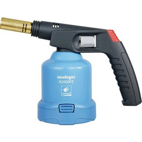 Lampe à brasage souple et dur X 2000 PZ avec brûleur X 1700- Allumage piézoélectrique automatique – Echelonnement très précis du réglage – Commande à une main du bouton de réglage – Poignée en polypropylène, très grande résistance aux chocs – Cloche d’acier pour la protection de la cartouche de gaz – Consommation 120 g/h Livraison : sans cartouche.