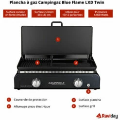 Plancha à Poser – CAMPINGAZ – à Gaz – Othello 2X TWIN – 66x52xH22cm
